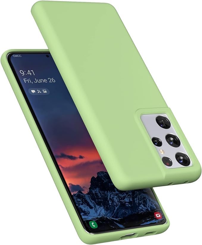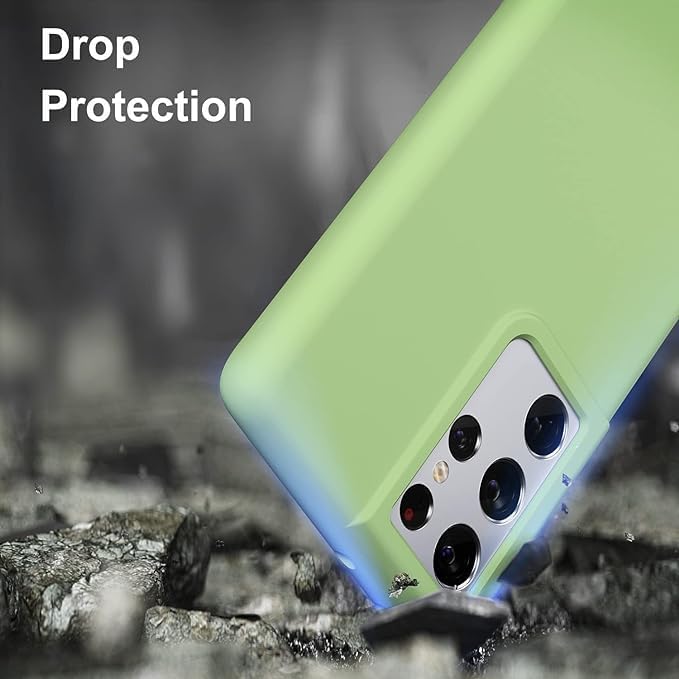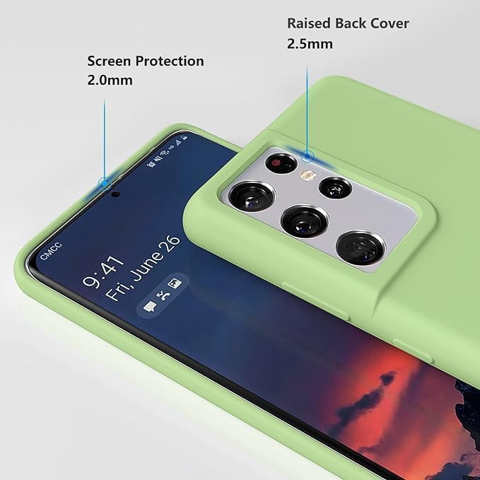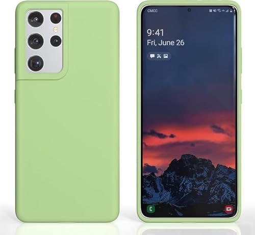 ELMO3EZZ - جراب سامسونج جالاكسي اس 21 الترا من المُعز مضاد للصدمات مصنوعة جل السيليكون السائل وبطانة قماش المايكروفايبر الناعم متوافق مع جالكسي شبكة الجيل الخامس 5G 6.8 بوصة ماتشا أخضر