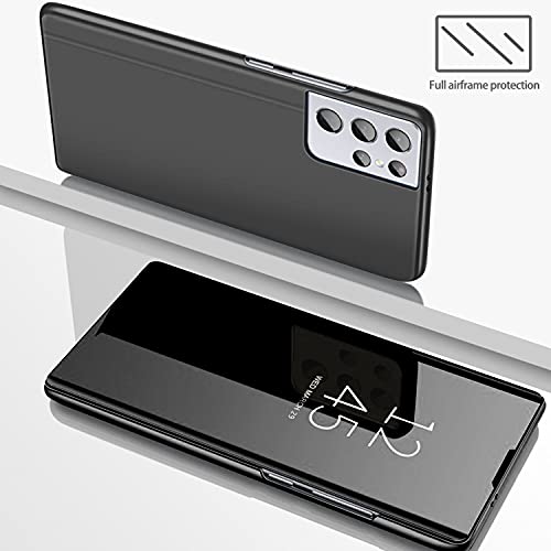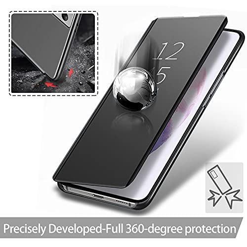 Nature-Univ Tech - جراب حماية رفيع قابل للطي بتقنية كلير فيو وبتصميم كتاب عاكس من البولي يوريثين المقاوم للحرارة لمقاومة الصدمات والخدوش والحماية الكاملة مع مسند لموبايل سامسونج جالاكسي S21 الترا 6.8 بوصة- اسود
