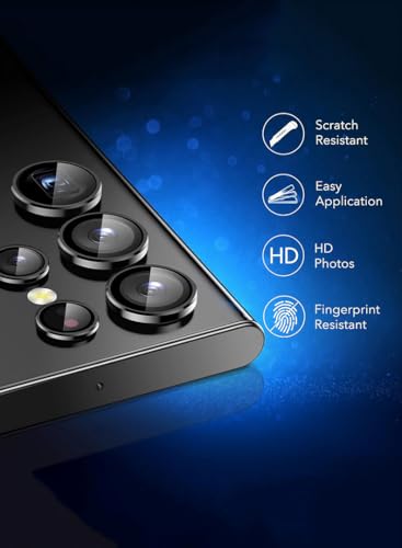 - واقي عدسة الكاميرا مقاوم للغبار / واقي عدسة لهاتف S22 الترا مع زجاج مقوى بدرجة صلابة 9 شفاف للغاية. لا يؤثر على أداء الصورة الأصلي المذهل لهاتفك ولا يترك بقايا أو ضباب أو ضوء أزرق عند استخدام الفلاش.