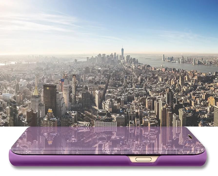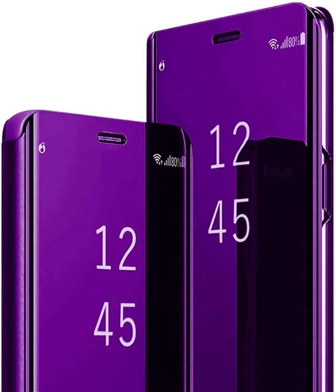 Generic - حافظة سامسونج جالاكسي S22 الترا كلير فيو فليب واقية واقفة متوافقة مع S22 - ارجواني من امارا ستور زجاج مُقسٌى و جلد