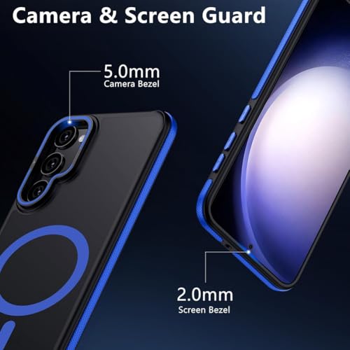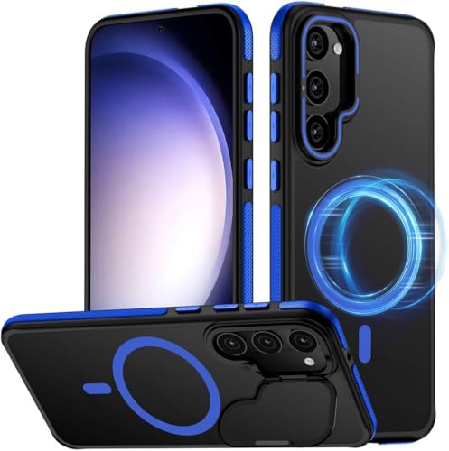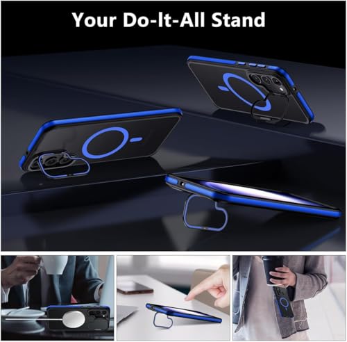 ELMO3EZZ - حافظة سامسونج جالاكسي S24 بلس/S25 بلس، متوافقة مع ماج سيف، مقبض مضاد للانزلاق، حماية من الدرجة العسكرية، جراب موبايل بمسند قابل للتعديل، جراب مغناطيسي (اسود وازرق)