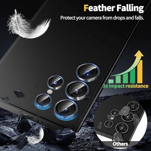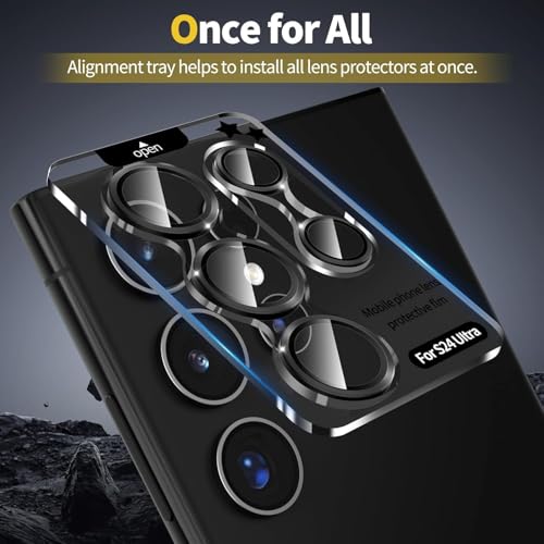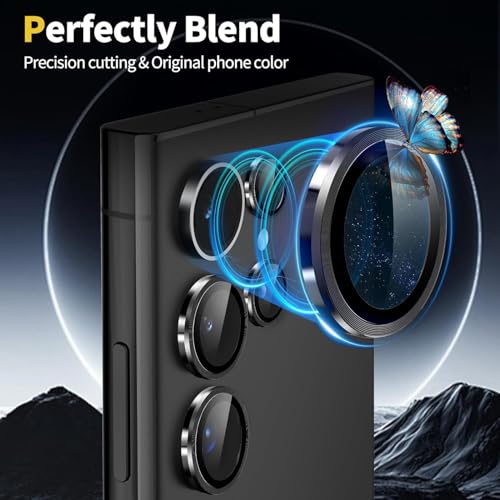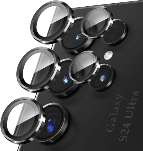 ELMO3EZZ - عدسة كاميرا سامسونج جالاكسي S24 الترا 5G من مويز، عبوة من 3 + 2 قطعة، طبقة من الزجاج المقوى بدرجة صلابة 9 وحلقة معدنية لمجموعة تثبيت الموبايل 2024 (اسود)
