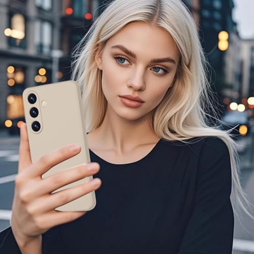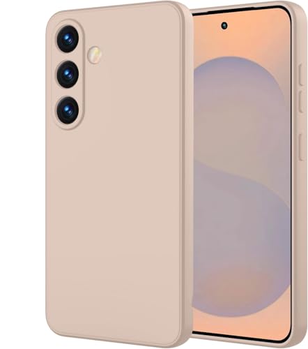 ELMO3EZZ - جراب حماية رفيع من السيليكون بقبضة ناعمة من المطاط ولون سادة غير لامع وتصميم لطيف مع غطاء كاميرا للبنات والنساء متوافق مع موبايل سامسونج جالاكسي S25 بلس، (بينك سيند)