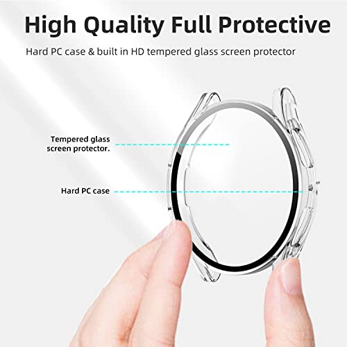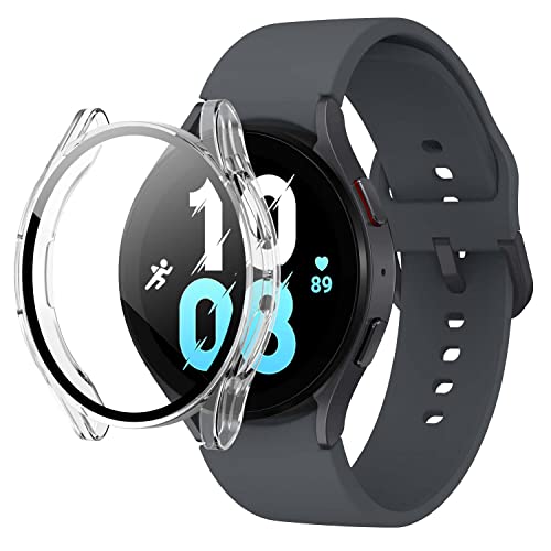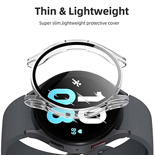 Generic - جراب حماية لساعة سامسونج جالكسي 5 2022 و4 2021 مقاس 44 ملم مع شاشة حماية زجاجية، غطاء صلب مقاوم للخدش من البولي كربونات بالكامل لساعة جالكسي ووتش 5 ووتش 4 (شفاف)