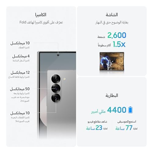 - أداء الألعاب: ألعاب قوية مع أسرع معالج على سامسونج قابل للطي. استمتع بلعب سلس كالحرير بمواصفات عالية.
