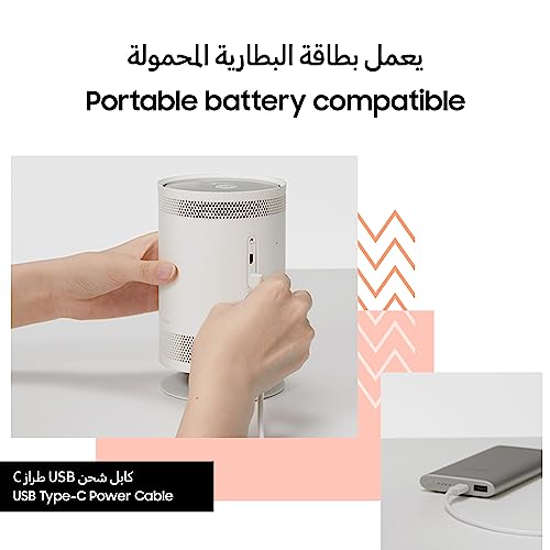 Samsung - شاشة سامسونج 100 بوصة فري ستايل LED ذكية محمولة بتقنية المدى الديناميكي العالي HDR ، كبيرة مع صوت 360 درجة اس بي LSP3BLAXZN موديل 2022 ابيض مدمجة (لاسلكي سلكي) (1920 × 1080 1920 1080)