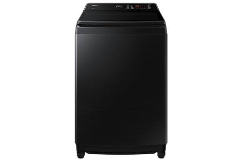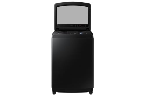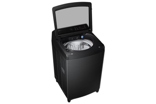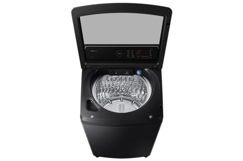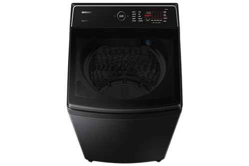 Samsung - غسالة من سامسونج موديل WA19CG6745BVAS بتحميل علوي سعة 19 كيلوجرام باللون الأسود والفضي مع تقنية إيكو بابل والغسيل فائق السرعة