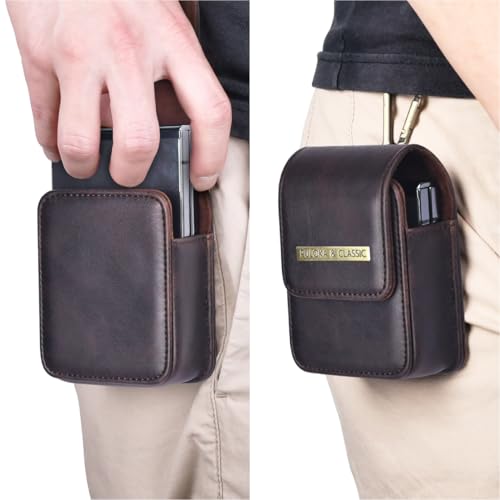 GIGA EG - حافظة جلد صناعي فاخر من بولوكا تعلق بالخصر لموبايل سامسونج زد فليب (1،2،3،4،5) (بني)