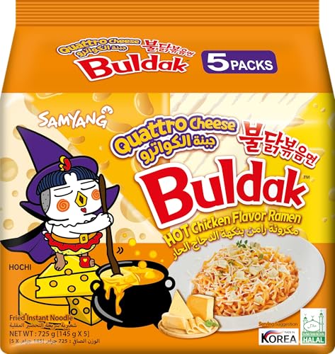 Generic - رامن ساميانج بولداك كواترو بنكهة الفراخ الحارة وجبنة كواترو، حلال، عبوة 145 جم، حزمة من 5 عبوات