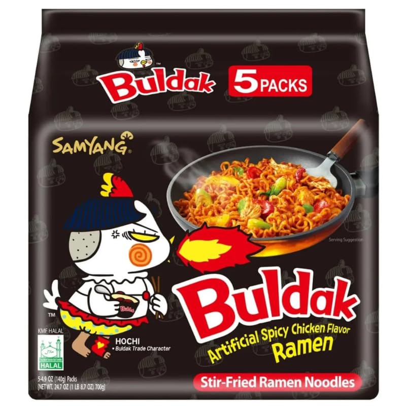 Generic - نودلز بولداك الكورية حلال بنكهة الدجاج الحار من 5 قطع بوزن 140 جم (عبوة من 5 قطع) من ساميانج
