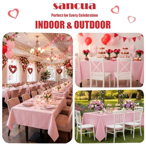 sancua - مفرش طاولة مستطيل من سانكوا مصنوع البوليستر وقابل للغسيل ومقاوم للبقع والانكماش القماش المزخرف لطاولة الطعام وبوفيه الحفلات والتخييم مقاس 1.37 × 1.98متر لون وردي