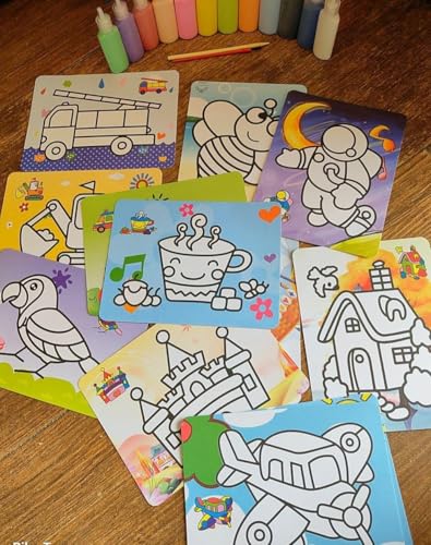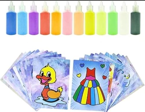 Generic - مجموعة الرسم بالرمل للأطفال المكونة من 12 قطعة لوحات الفقاعات الرملية يدوية الصنع صورة ورقية فن و تلوين
