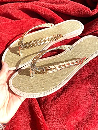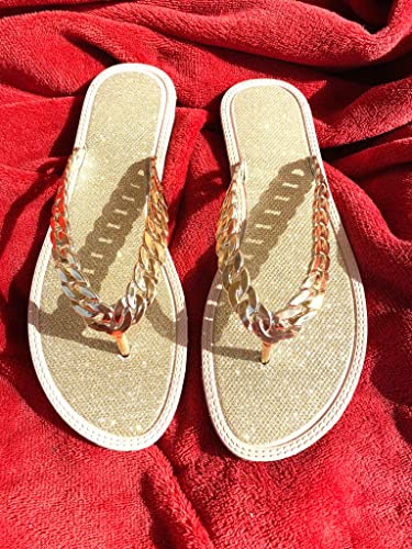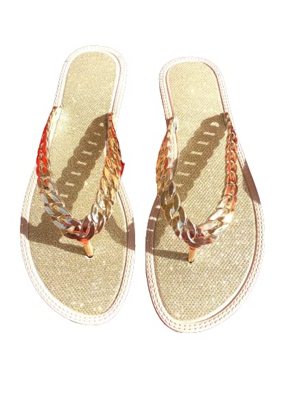 Generic - شبشب ذهبي مع ضفيرة وجليتر للنساء