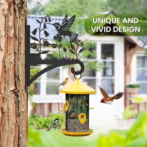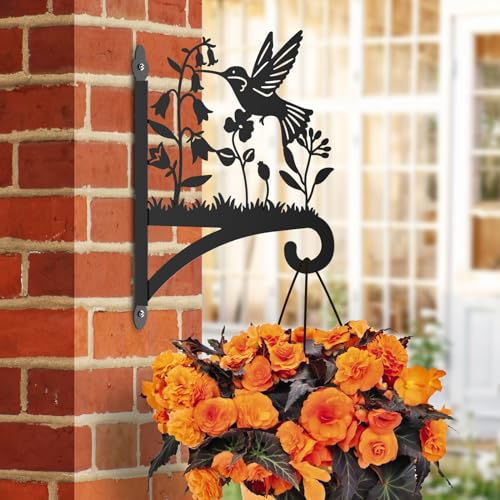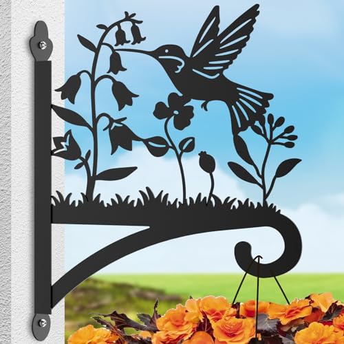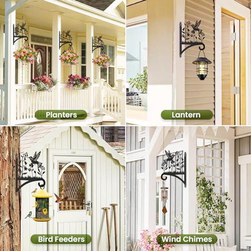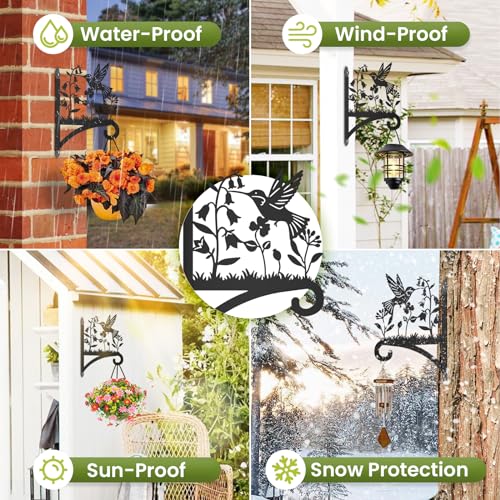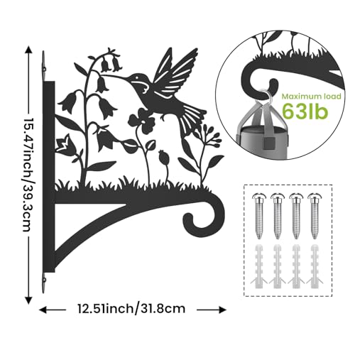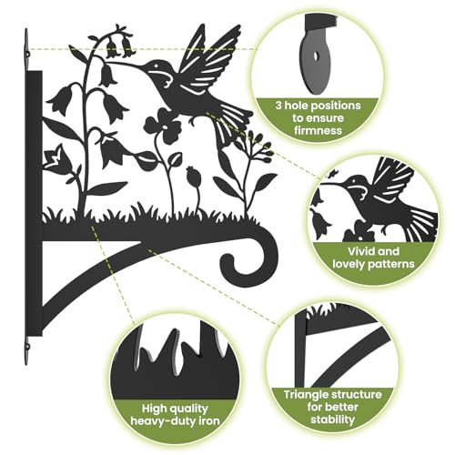 Sanduby - شماعات نباتات خارجية مع صورة ظلية للطيور 12.5 انش من الحديد المطاوع شديدة التحمل تثبت على الحائط سعة تحميل قصوى 62 باوند حامل معلق للسلال والفانوس أسود 63.0 رطل 63.0