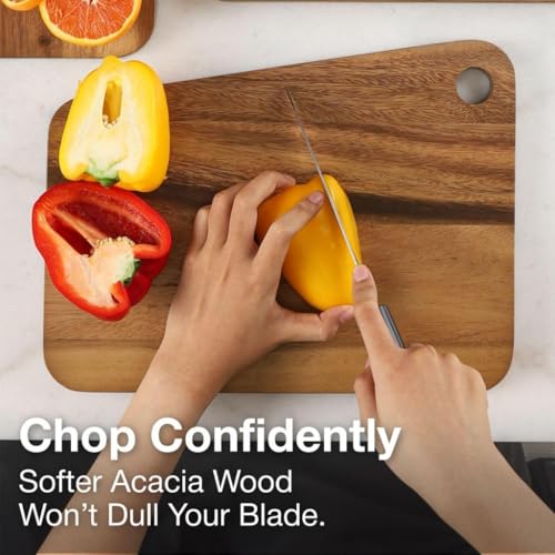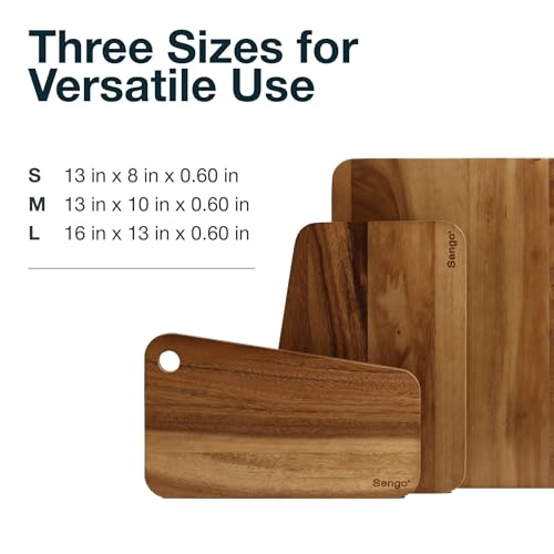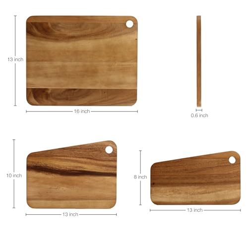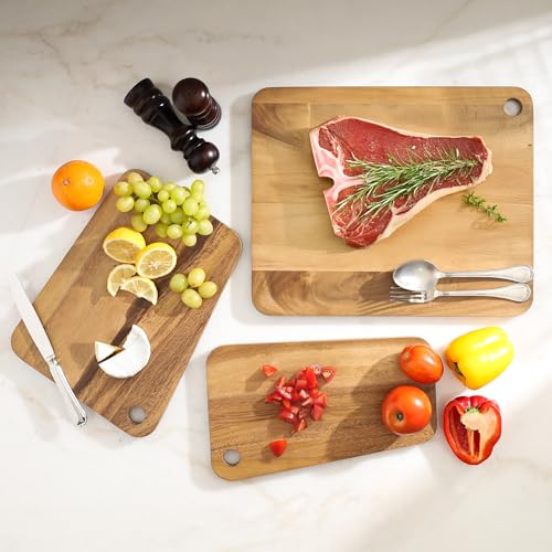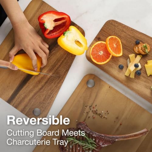 Sango - سانجو مجموعة الواح تقطيع قابلة للتكديس من خشب الاكاسيا الفاخر من اتيلير مكونة من 3 قطع بحافة مائلة واخاديد للعصير - الواح تقطيع للمطبخ قابلة للعكس لاعداد اللحوم والخضروات وعرض تشاركوتيري