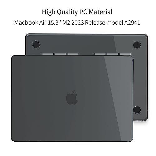 SanMuFly - جراب حماية لجهاز ماك بوك اير 15 بوصة اصدار 2023 شريحة M2 A2941 مع شاشة ليكويد ريتينا وخاصية التعرف باللمس من سانموفلاي، بلاستيك، أسود