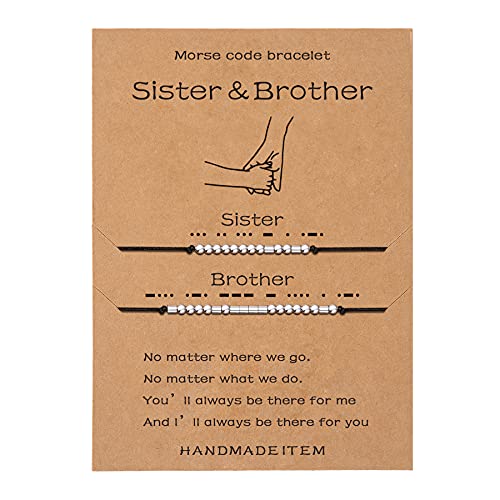 SANNYRA - مجموعة اساور بينكي بروميس مورس كود يدوية الصنع ومتطابقة بمقاس قابل للتعديل مع بطاقة رسالة مطبوعة للاخوة من سانيرا - قطعتين