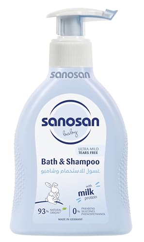 Sanosan - شامبو من سانوسان للشعر الناعم، تنظيف لطيف للأطفال حديثي الولادة، خالٍ من الدموع ومكونات طبيعية، عبوة واحدة سعة 200 مليلتر