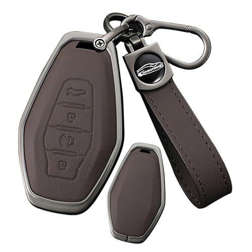 SANRILY - جراب مفاتيح مصنوع من المعدن ومناسب لمفتاح التحكم الذكي بأربعة أزرار مع ميدالية مفاتيح جلدية، بني، من سانريلي