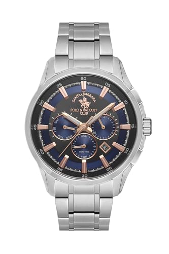 Santa Barbara Polo & Racquet - ساعة كرونوغراف للرجال من سانتا باربرا SB.1.10502-4، بمينا أزرق، بسوار فضة