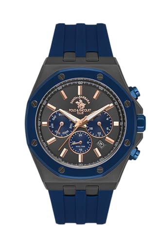 Santa Barbara Polo & Racquet - ساعة بحركة كرونوغراف للرجال من سانتا باربرا SB.1.10520-3، بمينا رمادي، بسوار أزرق