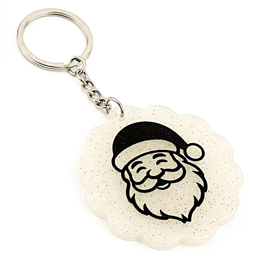 Generic - ميدالية بابا نويل مصنوعة من الريزن – ميدالية رأس سانتا كلوز شفافة بلمسة جليتر، متعددة الاستخدام للمفاتيح والشنط – هدية مميزة للعام الجديد من Milosh Store