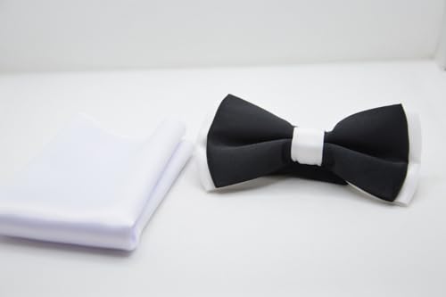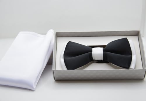 Generic - ربطة عنق للرجال من سانتينو دانتونيو باللونين الأسود والأبيض مع منديل أبيض (P1)