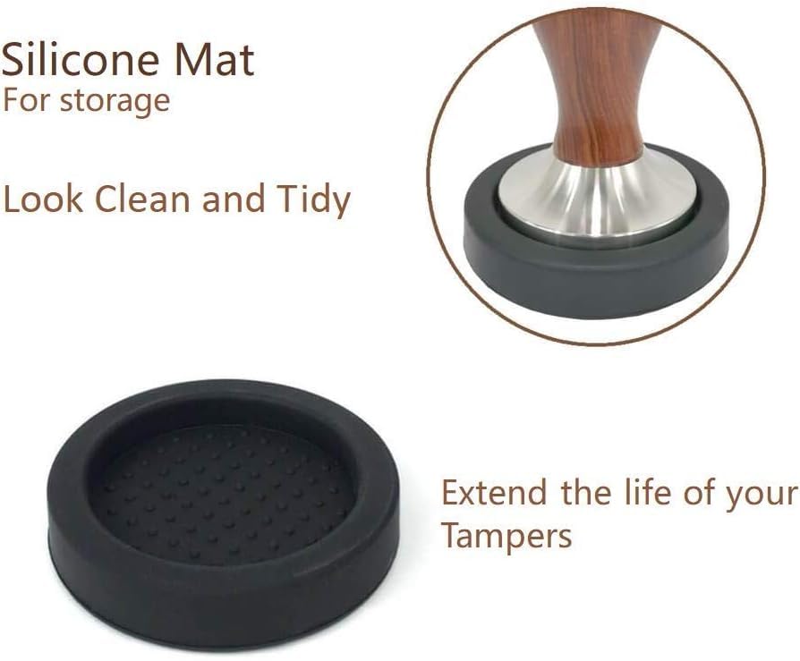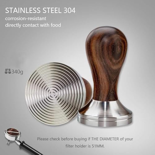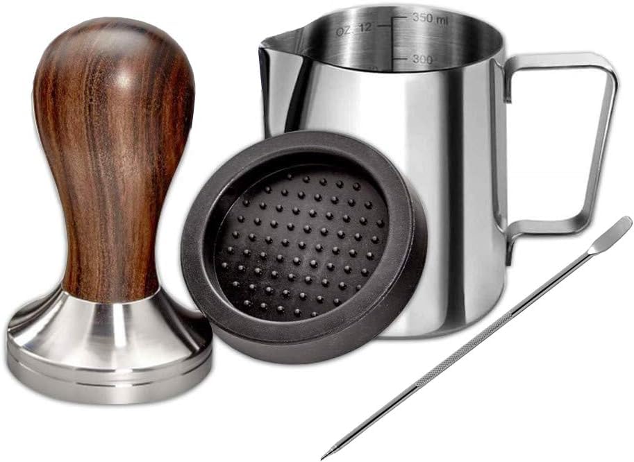 Generic - مكبس اسبريسو خشبي من سانتو مقاس 58 ملم، مكبس قهوة بمقبض من خشب الصندل، يتضمن ابريق رغوة حليب مجاني 12 اونصة/350 مل، بساط مكبس اسبريسو، قلم فني من الستانلس ستيل لتزيين اللاتيه والاسبريسو