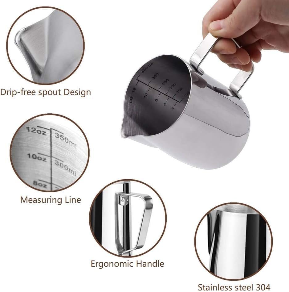 - 【وفر الوقت والمال】 - يتضمن مكبس قهوة (قطر 58 ملم)، إبريق حليب (12 اونصة/350 مل) قطعة واحدة من قلم القهوة الفني (5.3 انش) وسجادة مكبس من السيليكون. مقبض مكبس القهوة الخاص بنا مصنوع من خشب الصندل الأفريقي الفاخر، وهو أكثر راحة من المقابض المصنوعة من الستانلس ستيل. يحتوي الجدار الداخلي لإبريق الحليب على مقياس يمكنك من خلاله القياس بدقة عند الاستخدام.