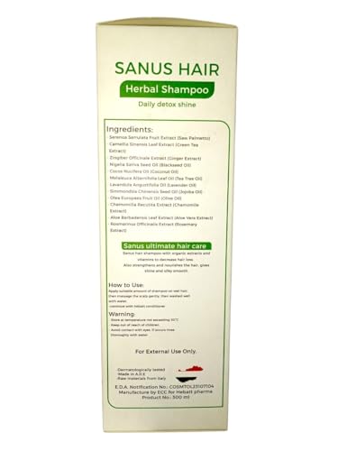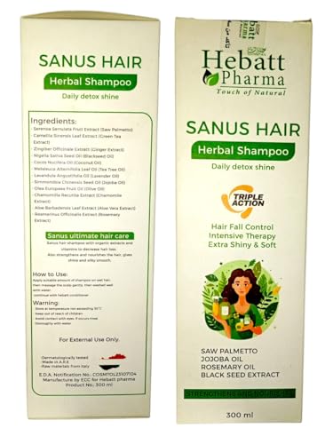 Generic - شامبو " سانوس هير" العشبي للتحكم في تساقط الشعر، علاج مكثّف لتقوية وتغذية الشعر – بخلاصة مجموعة أعشاب فعالة – 300 مل I من صيدلية الشبراويني