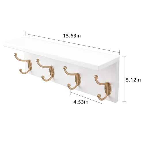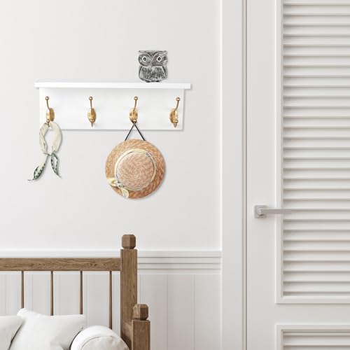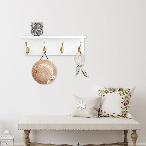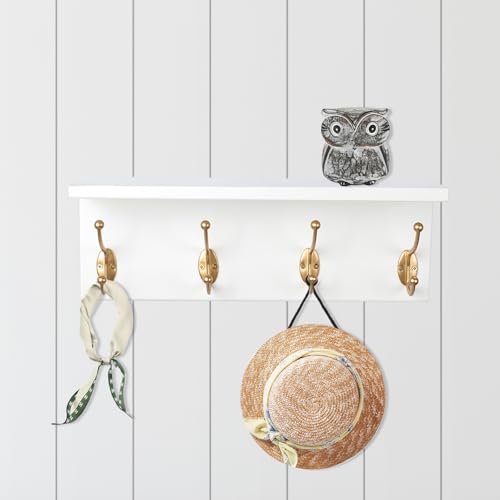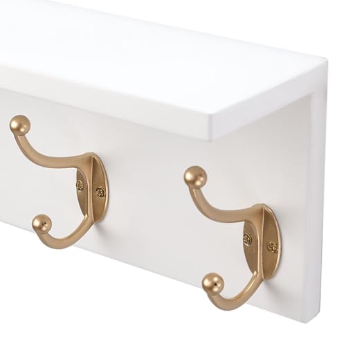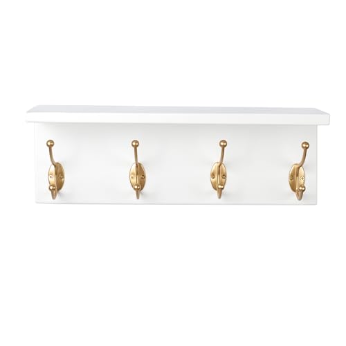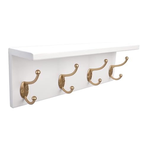 SANY DAYO HOME - إطار تعليق بحامل يثبت على الحائط من خشب الصنوبر بـ4 علاقات مزدوجة عالية التحمل للمداخل والمطابخ والحمامات وغرف النوم وغرف غسيل الملابس من ساني دايو هوم، لون أبيض وذهبي، 40.6 × 12.7 × 10.2 سم