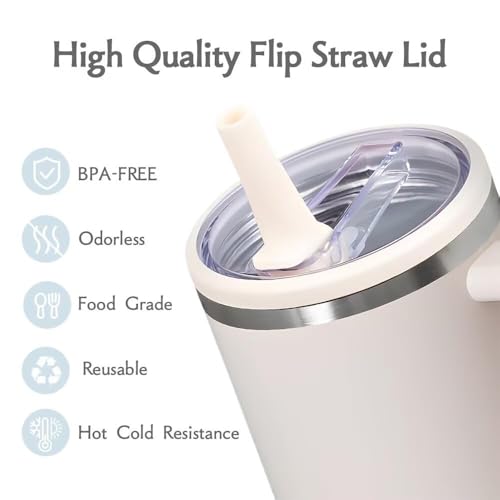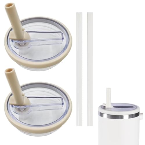 SANZEZ - غطاء كوب ستانلي سعة 1.2 لتر مزود بشفاطة علوية قلابة، مضاد للانسكاب متوافق مع ستانلي كوينشر وقابل لإعادة الاستخدام كغطاء لاكسسوارات ستانلي من كولايف، قطعتان