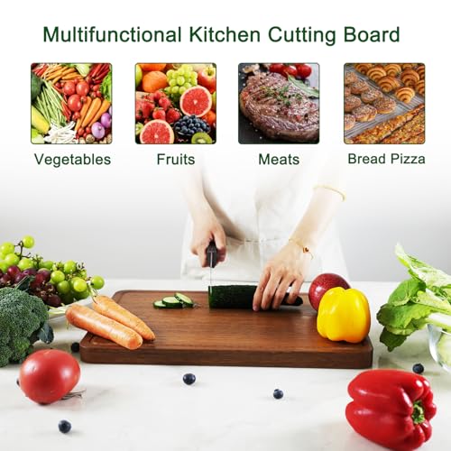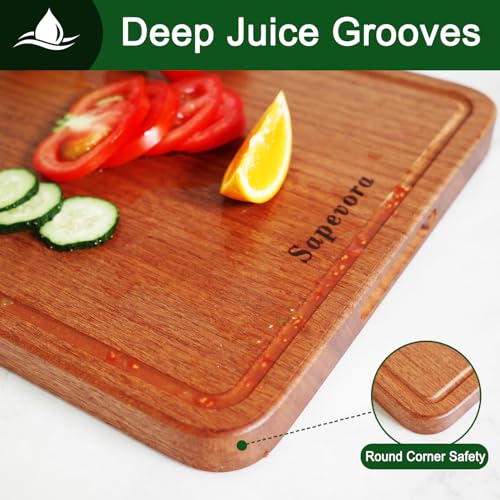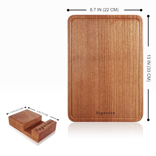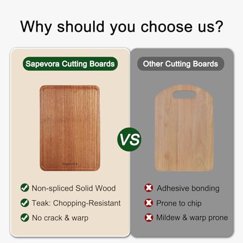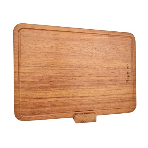 Sapevora - لوح تقطيع من خشب الساج الصلب من سابيفورا، لوح تقطيع خشبي سميك غير لاصق ومقاوم للكسر مع اخاديد عميقة ومقابض مدمجة للمطبخ واللحوم والخضروات والجبن 13 × 8.7 انش