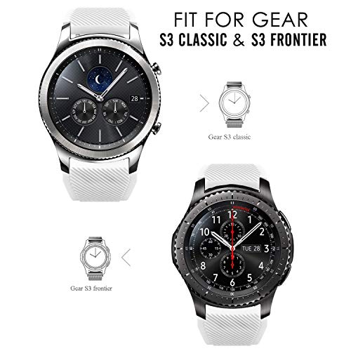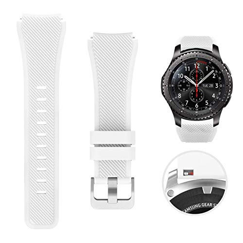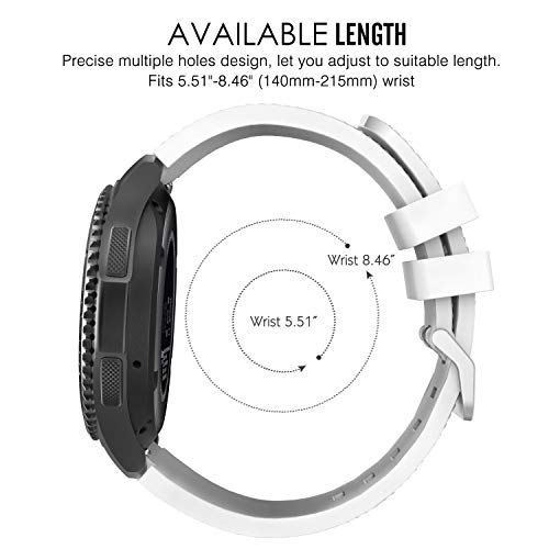 SAPU - سوار قياسي من سابو متوافق مع ساعة سامسونج جير S3 فرونتير وكلاسيك، مصنوع من السيليكون باللون الأبيض للجنسين، مقاس 140-215 ملم