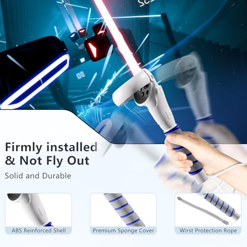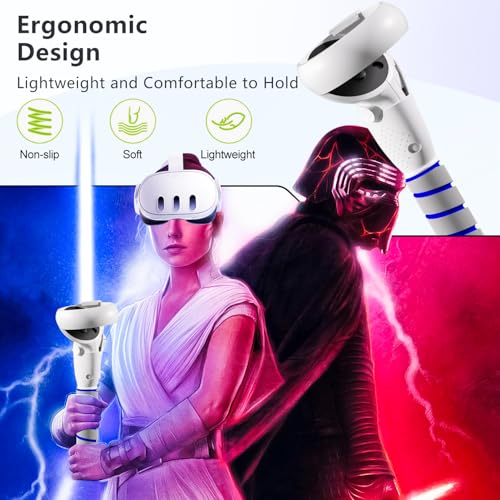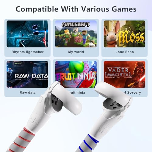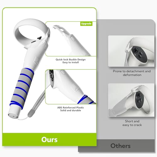 Saqico - مجموعة اكسسوارات 2 × 1 تتضمن أذرع طويلة ومقابض مريحة متوافقة مع أجهزة التحكم اليدوية اوكيولوس كويست 2، مقابض تمديد الذراع/ العصا الطويلة لألعاب الواقع الافتراضي ميتا كويست 2 للعبة بيت صابر وجولف كلوب