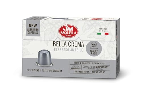 Generic - كبسولات اسبريسو كريما من ساكويلا بيلا، متوافقة مع نسبريسو، كبسولات من الالومنيوم، 30 قطعة