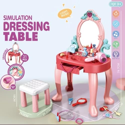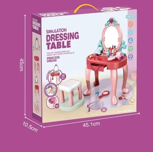 Generic - سراحه للبنات ، للاطفال الصغار، طاولة سراحه للبنات الصغيرات مع مراة ومقعد، العاب سراحه للاميرات لعمر 2 و3 و4 و5 سنوات