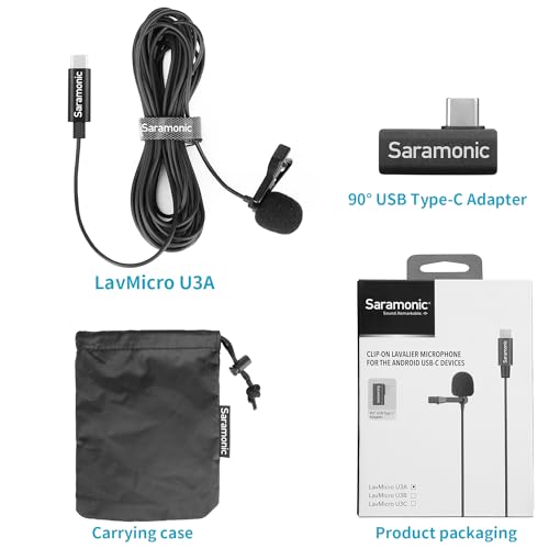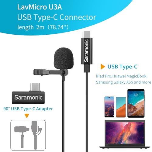 Saramonic - ميكروفون لافالير U3A USB من لافمايكرو لايفون 15 وأندرويد واي باد الجديد والكمبيوتر والمزيد مع كابل 2 متر ومحول 90 درجة لمدونات الفيديو والمقابلات ويوتيوب وتيك توك والبث المباشر من سارامونيك