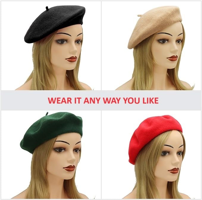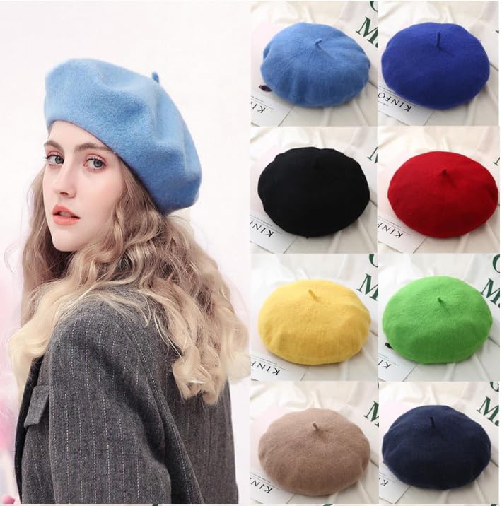 SARIMON - قبعة بيريه فرنسية من الصوف للرجال والنساء من ساريمون بألوان سادة