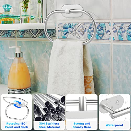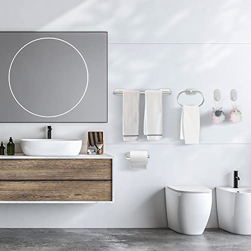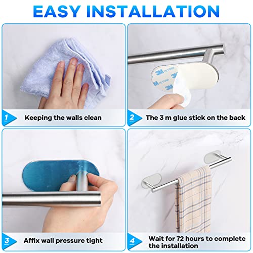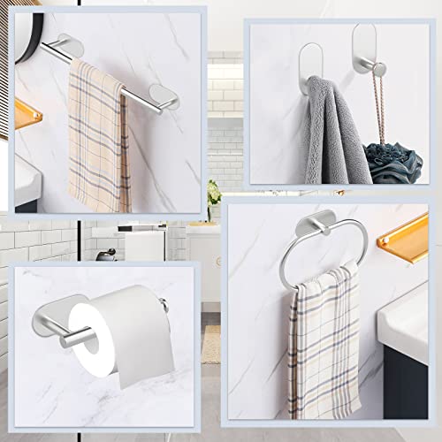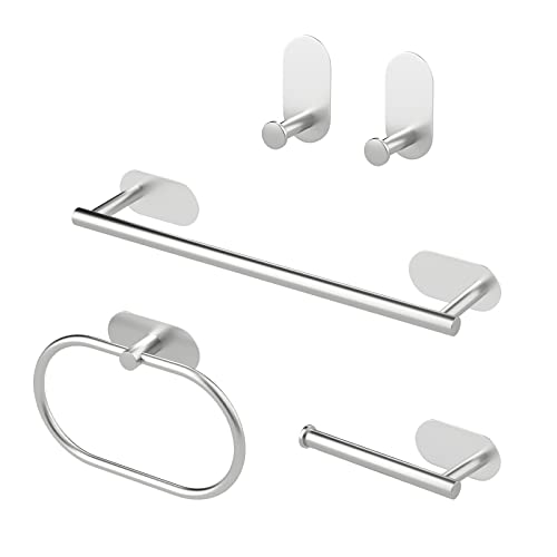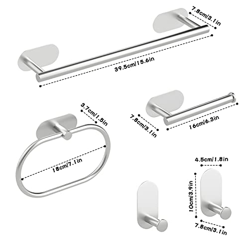 Sarsumir - حامل مناشف يثبت على الحائط، حامل مناشف يد للحمام والمطبخ من الفولاذ المقاوم للصدأ بخطافات ذاتية اللصق - مجموعة أكسسوارات حمام بدون ثقب من 5 قطع من سارسومير