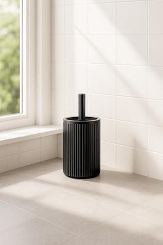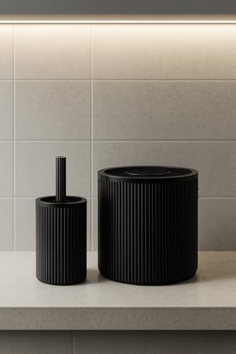 Sas Haus - مجموعة حمام سوداء من سلسلة لاينز من ساس هاوس، مجموعة مكونة من قطعتين من اسطوانة الاكريليك سعة 5 لتر وفرشاة تواليت بلون اسود