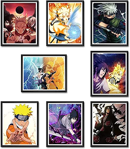 Al Adham - بوستر حائط بطبعة صورة ساسوكي كاكاشي من سلسلة الانيمي والمانجا اليابانية ناروتو، لوحة فنية بدون اطار مطلية بالاشعة فوق البنفسجية لتزيين ديكور المنزل وغرفة النوم المعيشة، 8×10 بوصة، 8 قطع، متعدد الألوان