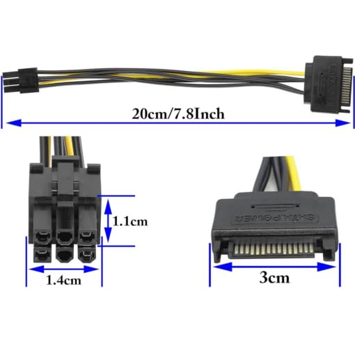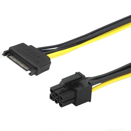 Generic - كابل محول طاقة ساتا لوحدة معالج الرسومات بمنفذ PCI-E بـ 15 دبوس ذكر إلى 6 دبابيس - تحويل طاقة موثوق به من مزود الطاقة إلى وحدة معالج الرسومات (1)