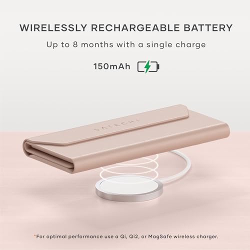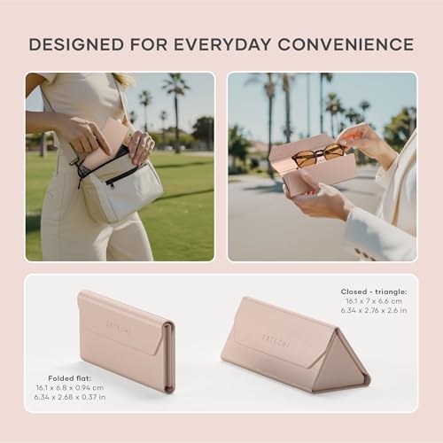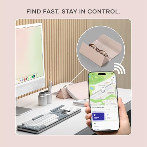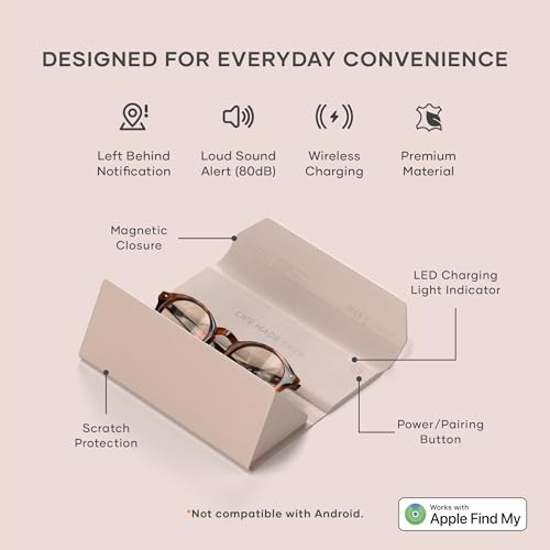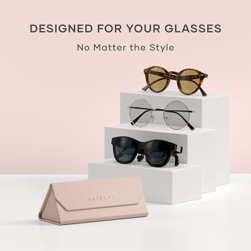 SATECHI - ساتيشي حافظة نظارات ذكية من فايند اول، قابلة للطي ومحمولة، قابلة لاعادة الشحن اللاسلكي، تنبيهات اليسار، جرس صوتي عال، متوافقة مع معظم النظارات ونظارات XR/AR - وردي صحراوي