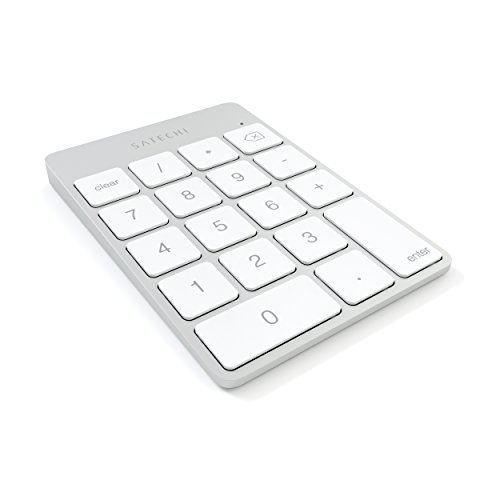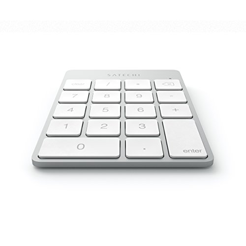 SATECHI - لوحة مفاتيح إضافية لاسلكية تعمل بالبلوتوث مع 18 مفتاح رفيع من الألومنيوم متوافقة مع ماك بوك برو، وماك بوك اير، وماك ميني، واي ماك، واي ماك برو، واي باد، وآيفون والمزيد من ساتيشي (فضي)