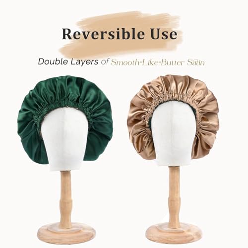 Generic - بونيه من الساتان، بونيه من الحرير، بونيه للشعر للنوم، للنساء، شعر طبيعي مجعد اللون اخضر