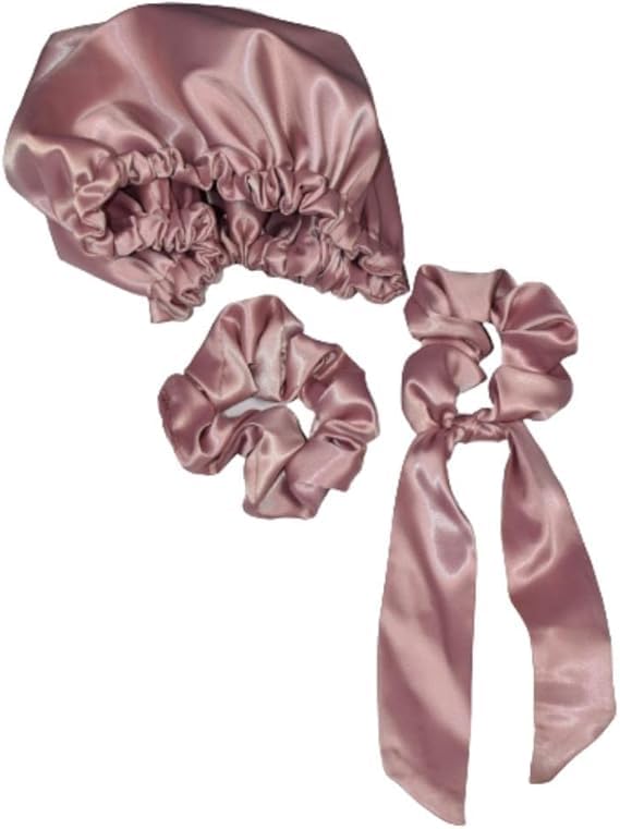 Generic - بونيه ساتان مع 2 ربطة شعر بلون مناسب ومذهل - مقاس واحد