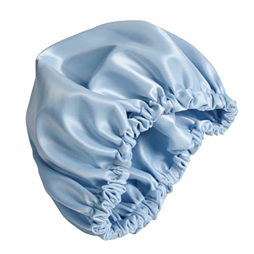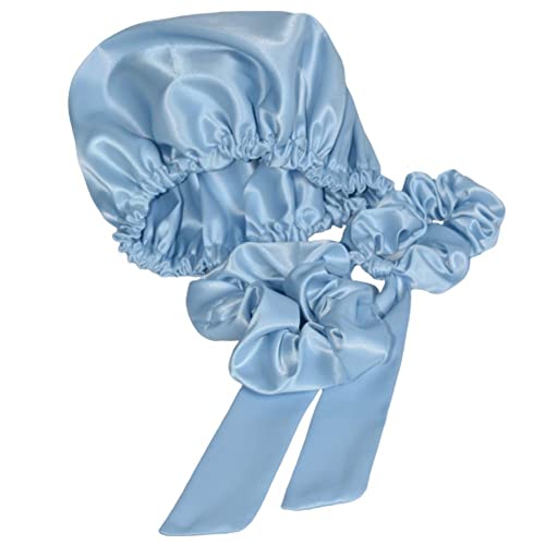 Generic - بونيه ساتان باللون الميلكي، مصنوع من مواد مختلطة للجنسين، بتصميم مريح مع ربطتين شعر سكرانشي