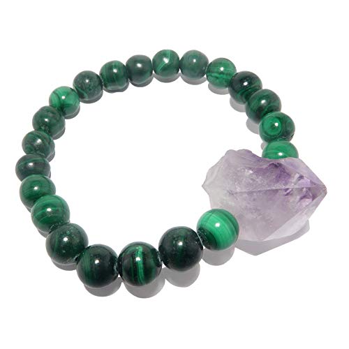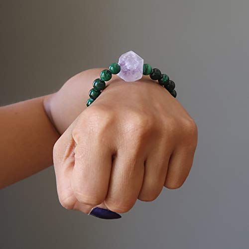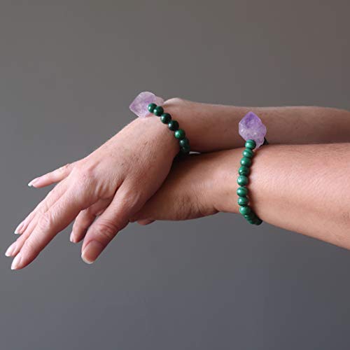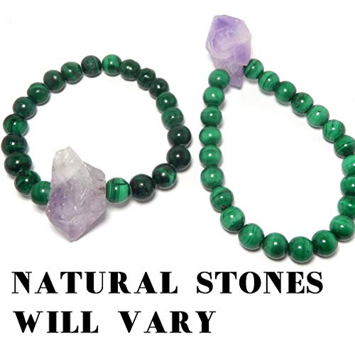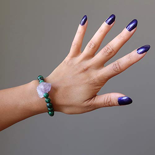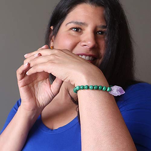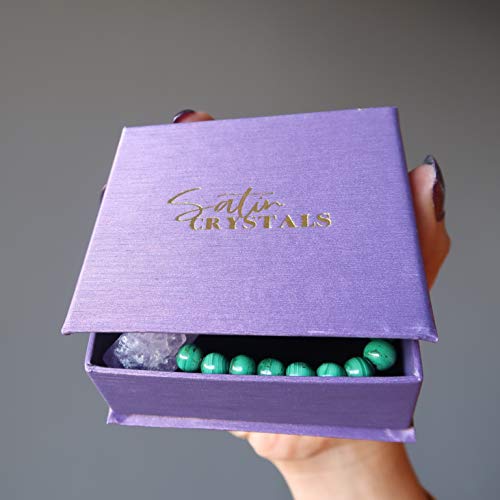 Satin Crystals - سوار جمشت بوتيك من حجر الملكيت الاخضر الخام المصنوع يدويا قابل للتمدد فريد نوعه B02 احجار كريمة للبالغين الجنسين