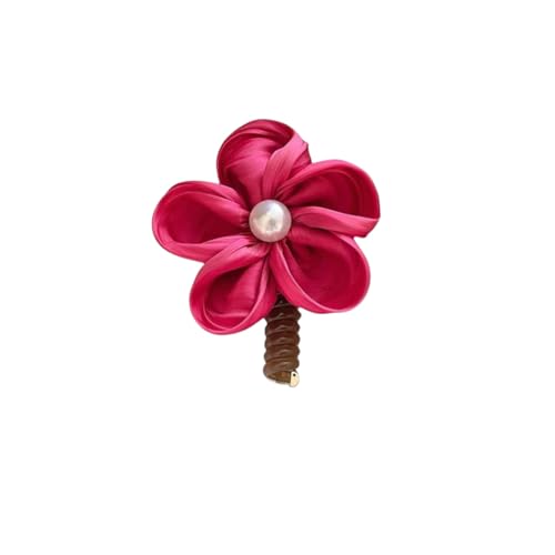 Generic - دبوس شعر زهرة ساتان مع لؤلؤة، جميلة، مشبك شعر نسائي للتسريحات الأنيقة (احمر)